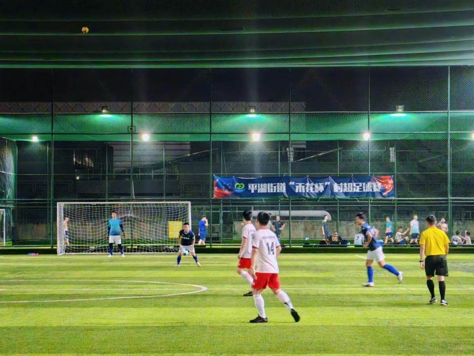 开赛哨响,揭幕战在禾花社区队与平湖商会队间展开。上半场双方1:1僵持不下,下半场禾花队连进4球,最终以5:1锁定胜局。“咱社区球员比电视里的还拼!”观众席上,带着孙子的陈伯连连喝彩。